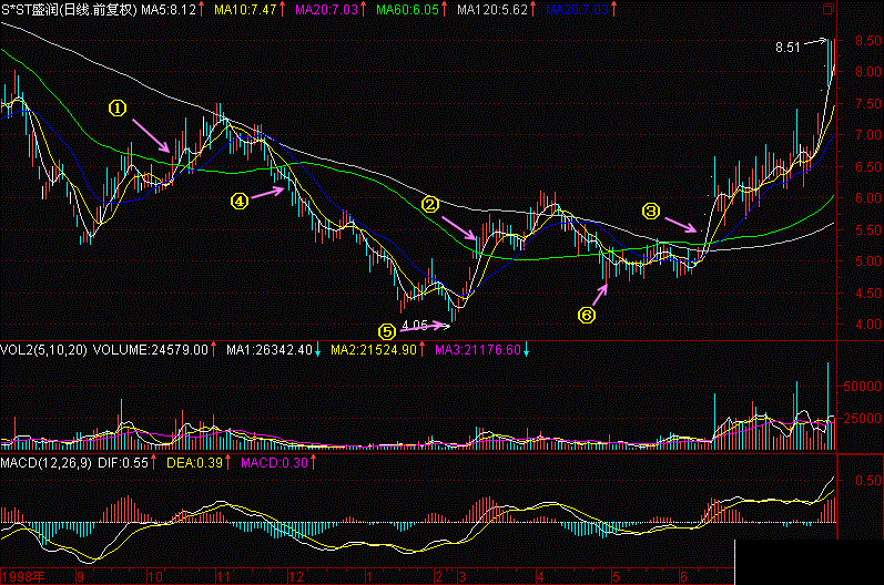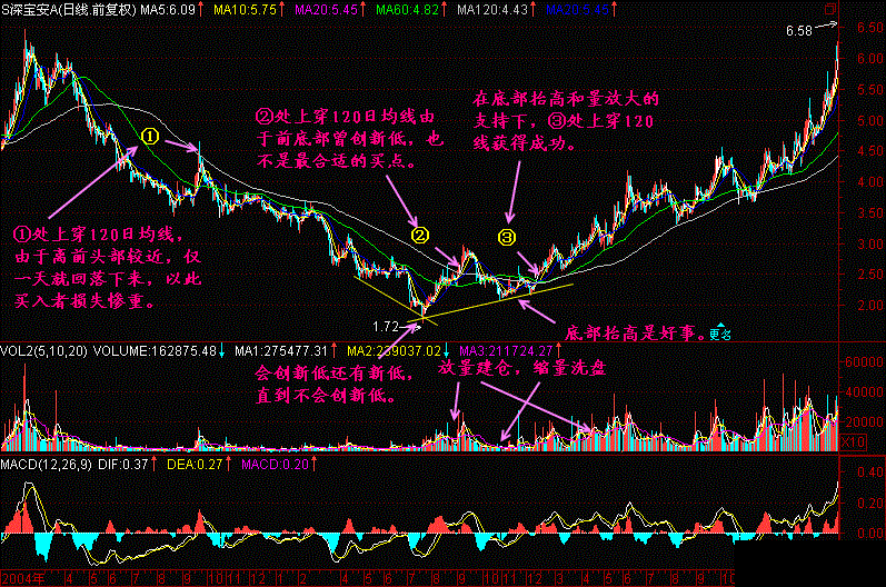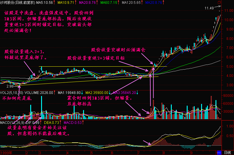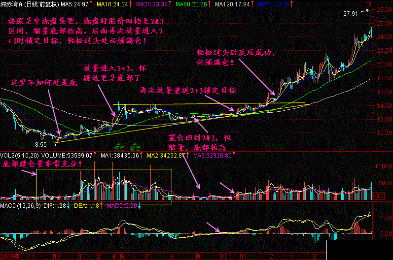 股价总是周而复始地运行在这个体系当中,只要我们紧紧牢记“2+3持股、2&3观望、2-3空仓”的原则,我们就能分享一只股票大部分的上升段,逃避一只股票大部分的下跌段,从而为我们把握股价找到了坐标
