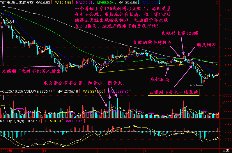 每一次形成“五线顺下”的地方,都是暴跌的开始,尤其以后三死叉为重!