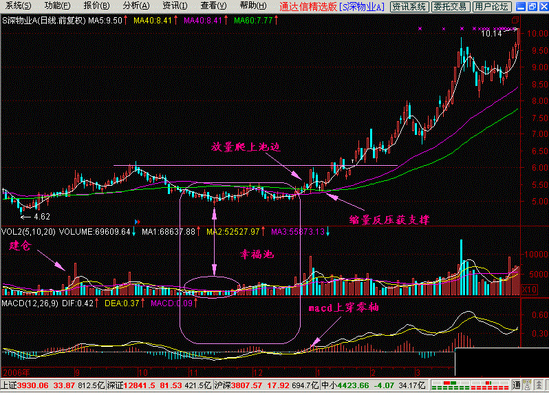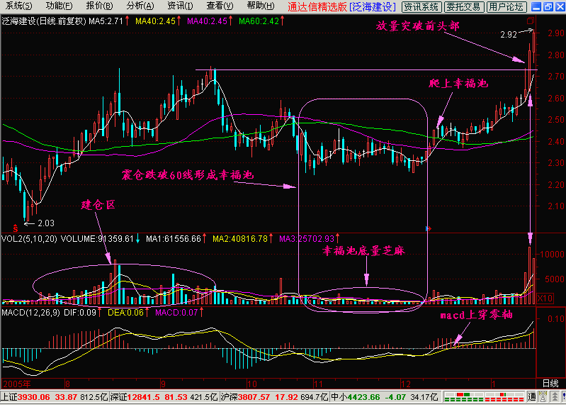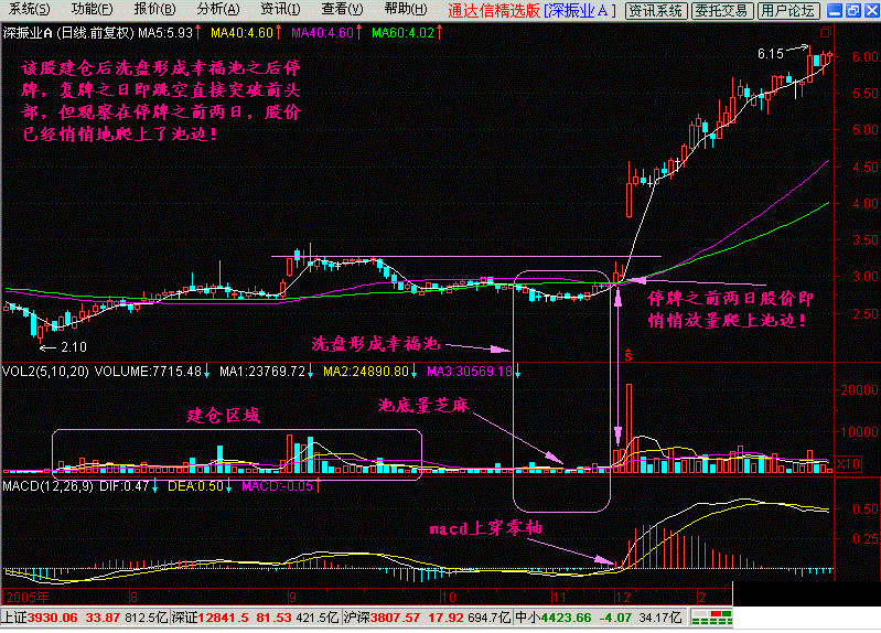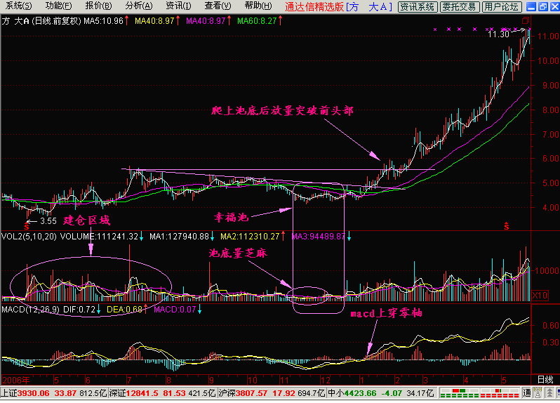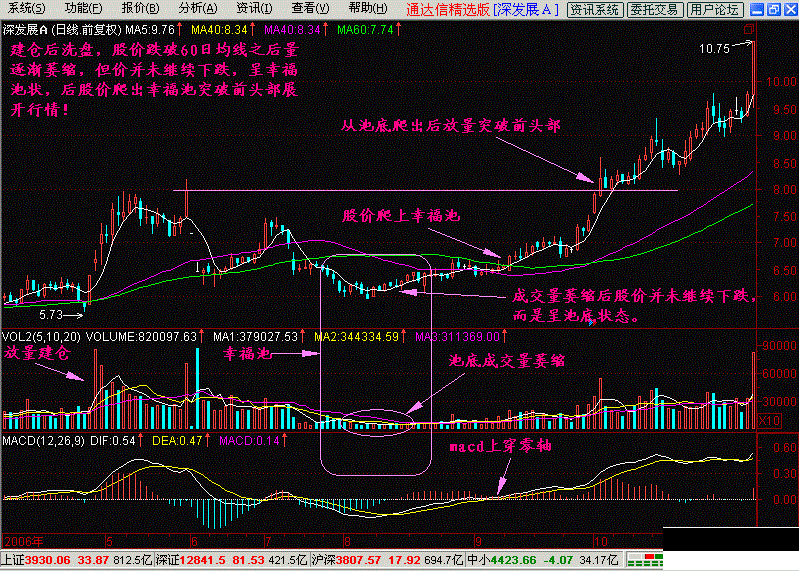 幸福池是庄家在底部建仓完毕后的一个震仓行为,当股价在底部区间经过放量建仓后庄家就要考虑震仓驱赶散户了,观察幸福池底必须有量芝麻点,出现量芝麻点后股价不再下跌,然后放量爬上池边不再跌破60线,则随时有可能突破前头部展开行情!