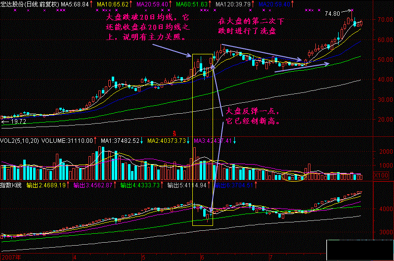 一般选强势股最简单的方法就是看指数已经跌破20日均线时,那些没跌破20日均线的个股,或者没跌破10日均线的个股,最好是不跌破5日均线的个股。这样的个股好像完全和暴跌没有关系,自顾自的走自己的行情,这样的个股起码说明以下几点。