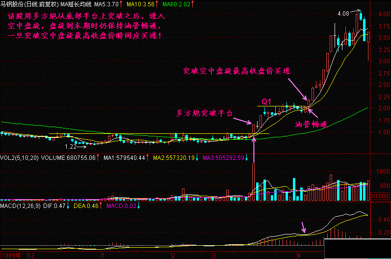 油路闭塞如果发生在离开T线过远的地方,由于主力已经大幅获利,那么就存在出货的可能性了。对于【油管畅通】的空中盘旋,突破空中盘旋最高收盘价瞬间是买进的好机会!