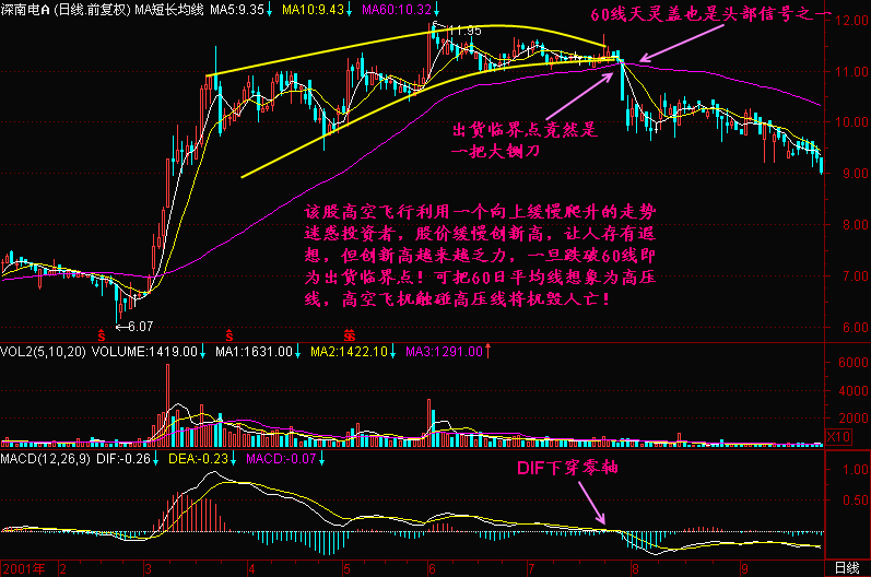在欣赏【高空飞行】所做的高难度飞行表演的同时,你一定要记住,60日平均线就像空中的高压线,一旦飞机下栽,触及高压线,将会机毁人亡!