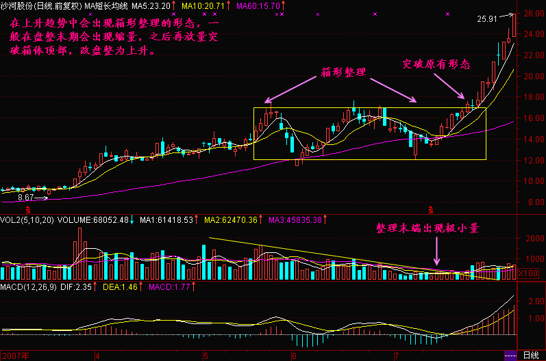 形态整理是换手的需要,只有让想卖出的人卖出,想买进的人买进,后面的行情才能够轻松上涨,也就是和我们的空中加油一个道理,所不同的是空中加油要求油管尽量要畅通,而整理形态就不一定,整理时间稍长,油管就闭塞了。
