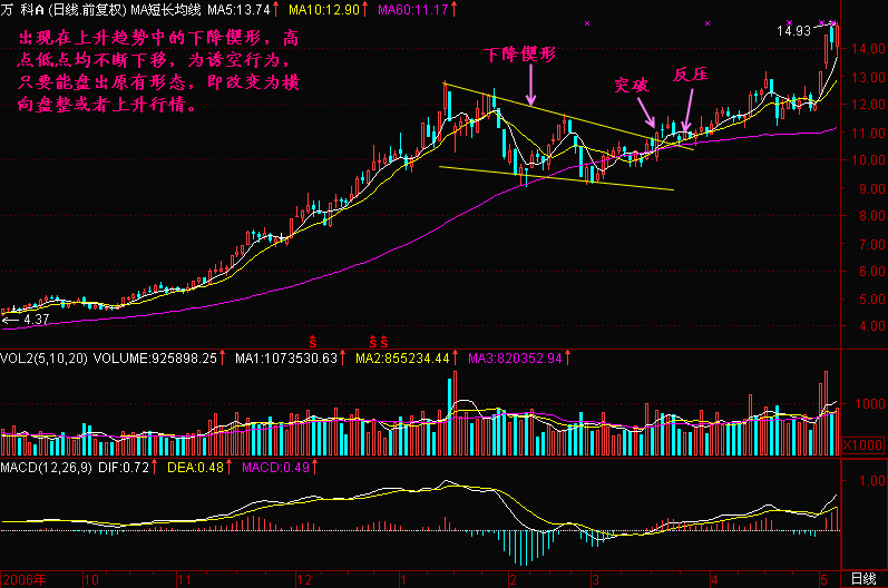除了三角形整理以外,还有诸如:“箱体整理”、“旗形整理”、“偰形整理”、“底部三角形”、“上升三角形”等等形态……