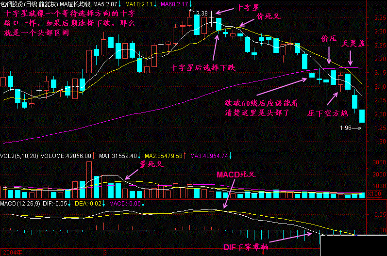 (1)头部十字星给人以股价将选择新方向的感觉,投资者常在这里失去方向;