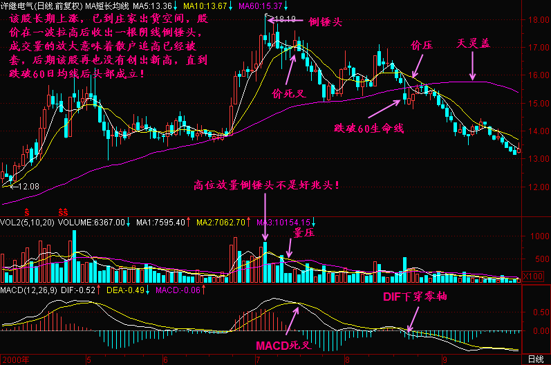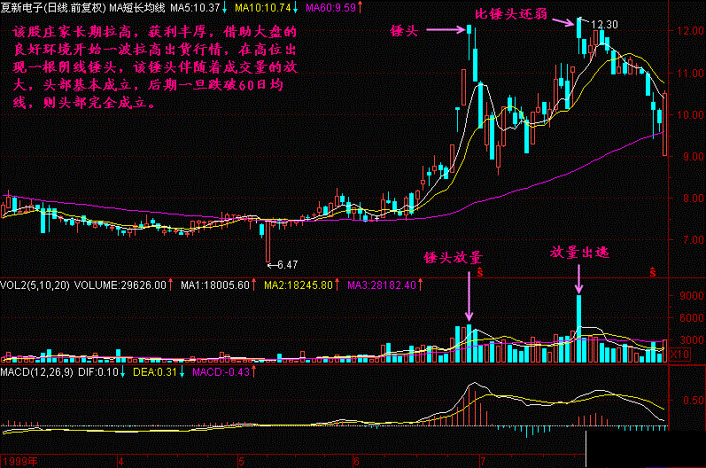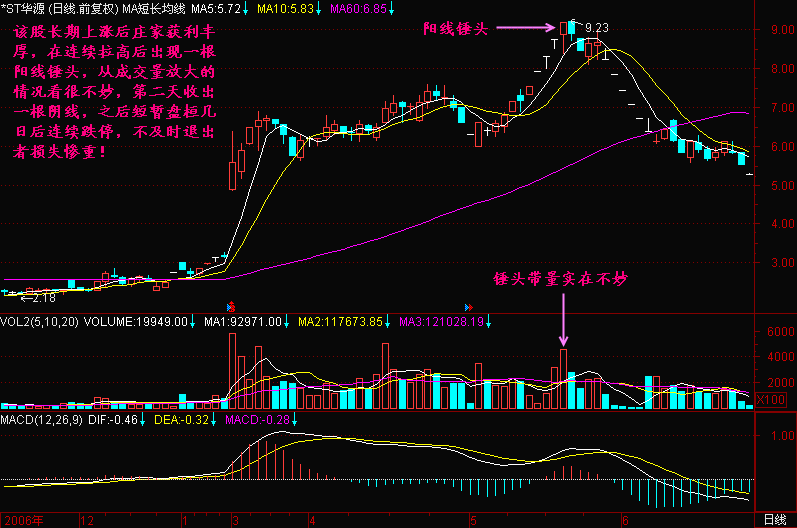 如果天锤配合上放量,那就更加不妙,一旦后市跌破60日平均线则必须清仓,否则将损失惨重!