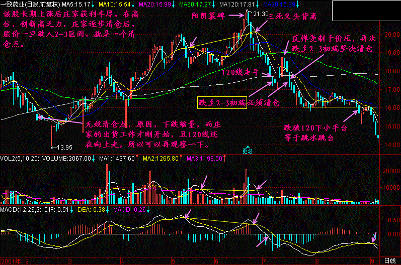 在股价经历了“2+3末端”和“上升2&3末端”后,如果庄家清仓基本完毕,则股价极容易跌至“2-3初端”,而2-3区间是不能操作区,所以跌至2-3初端等于清仓的信号,这点务必要牢记!